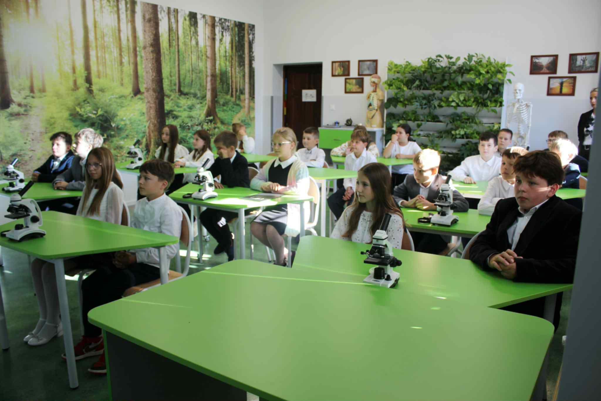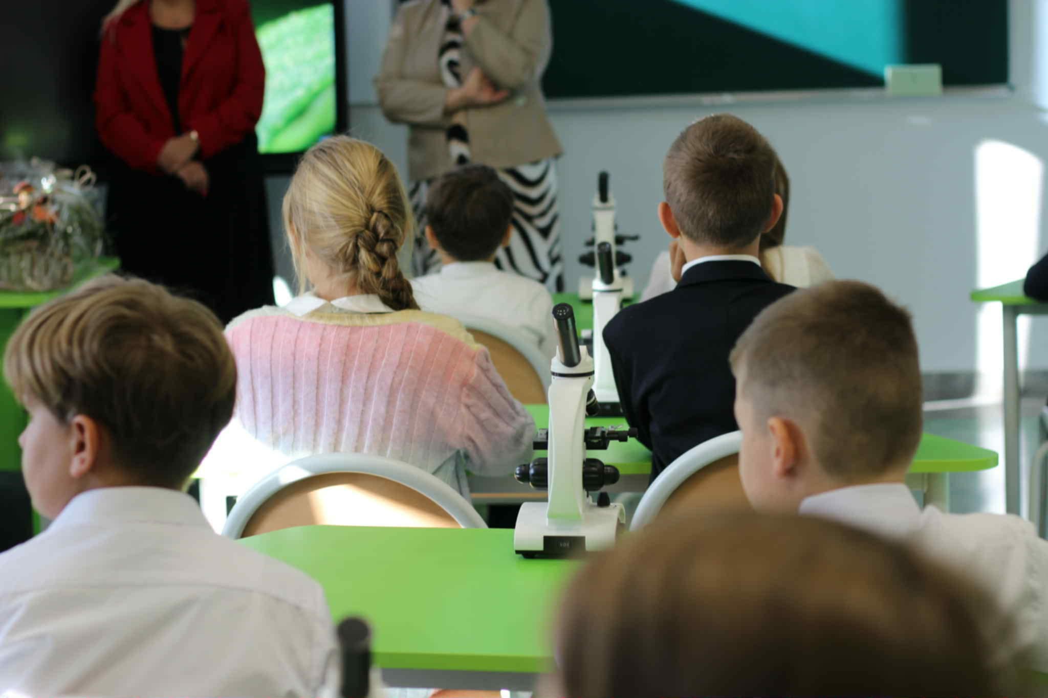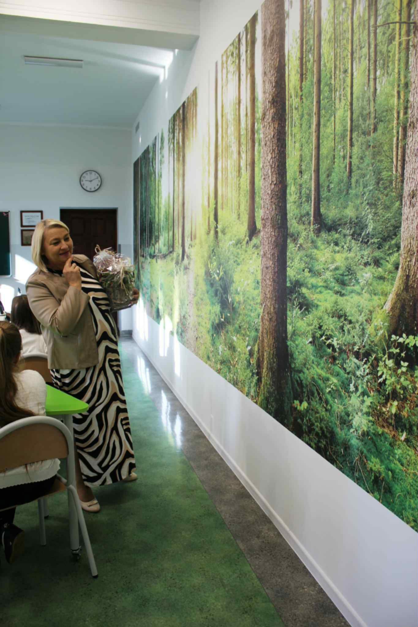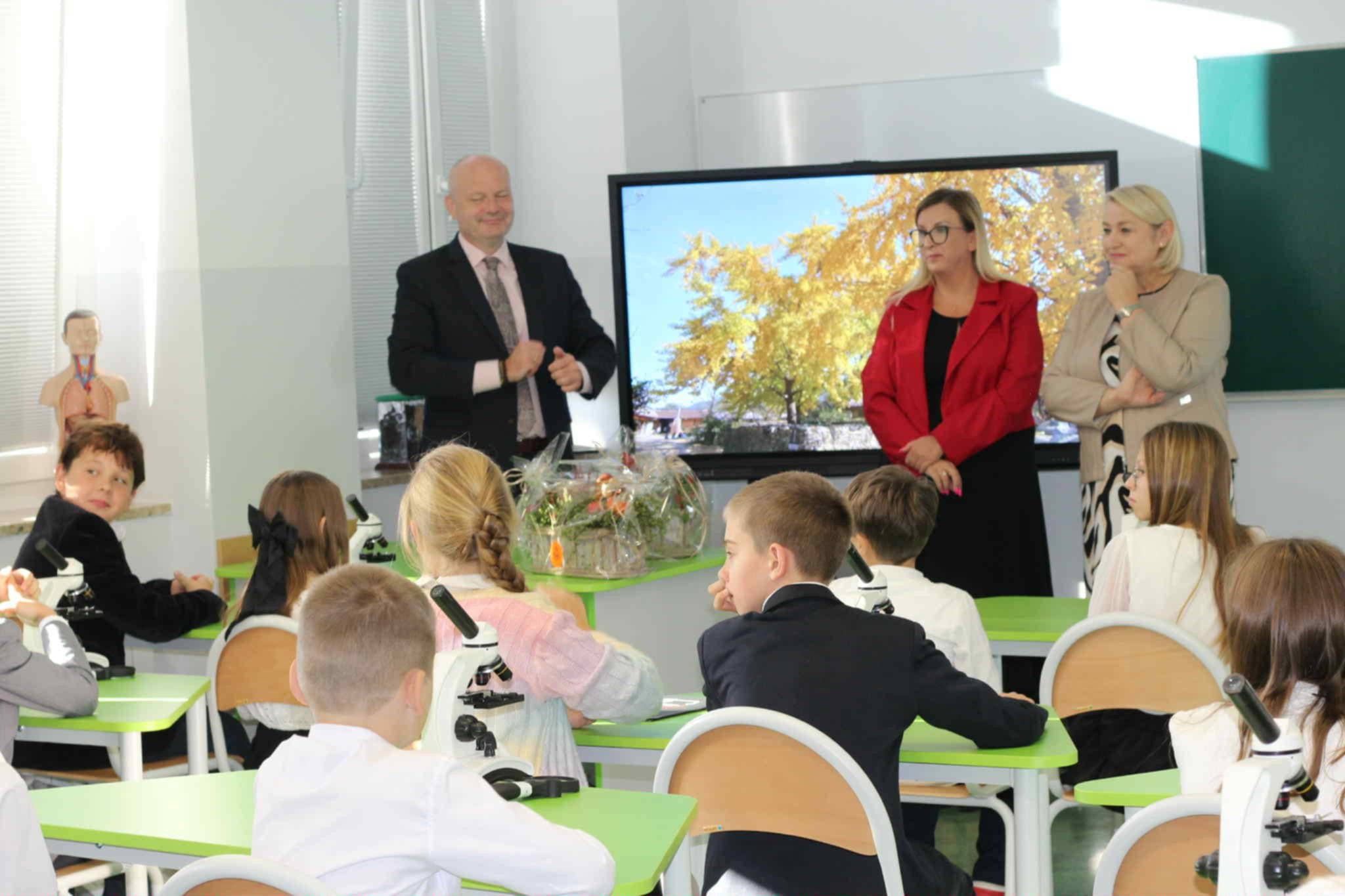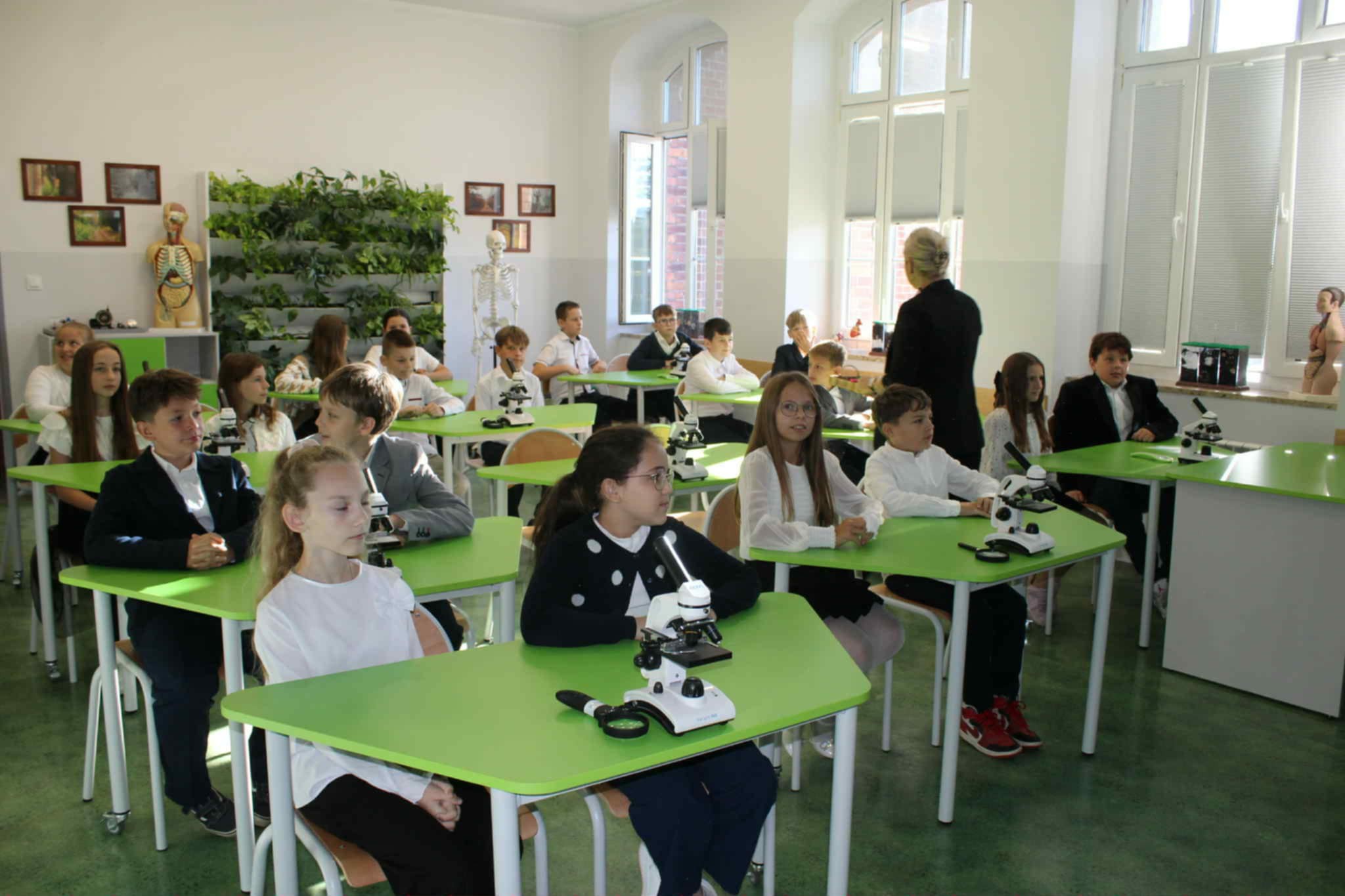 Uczniowie z entuzjazmem przygotowali się do testowania mikroskopów, podziwiali zieloną ściankę i kolorowy mural, a goście życzyli ekscytujących doświadczeń w nowej sali lekcyjnej. Pierwsze chwile spędzone w nowej przestrzeni zapowiedziały inspirujące lekcje, które już wkrótce odbędą się w wieleńskiej jedynce.