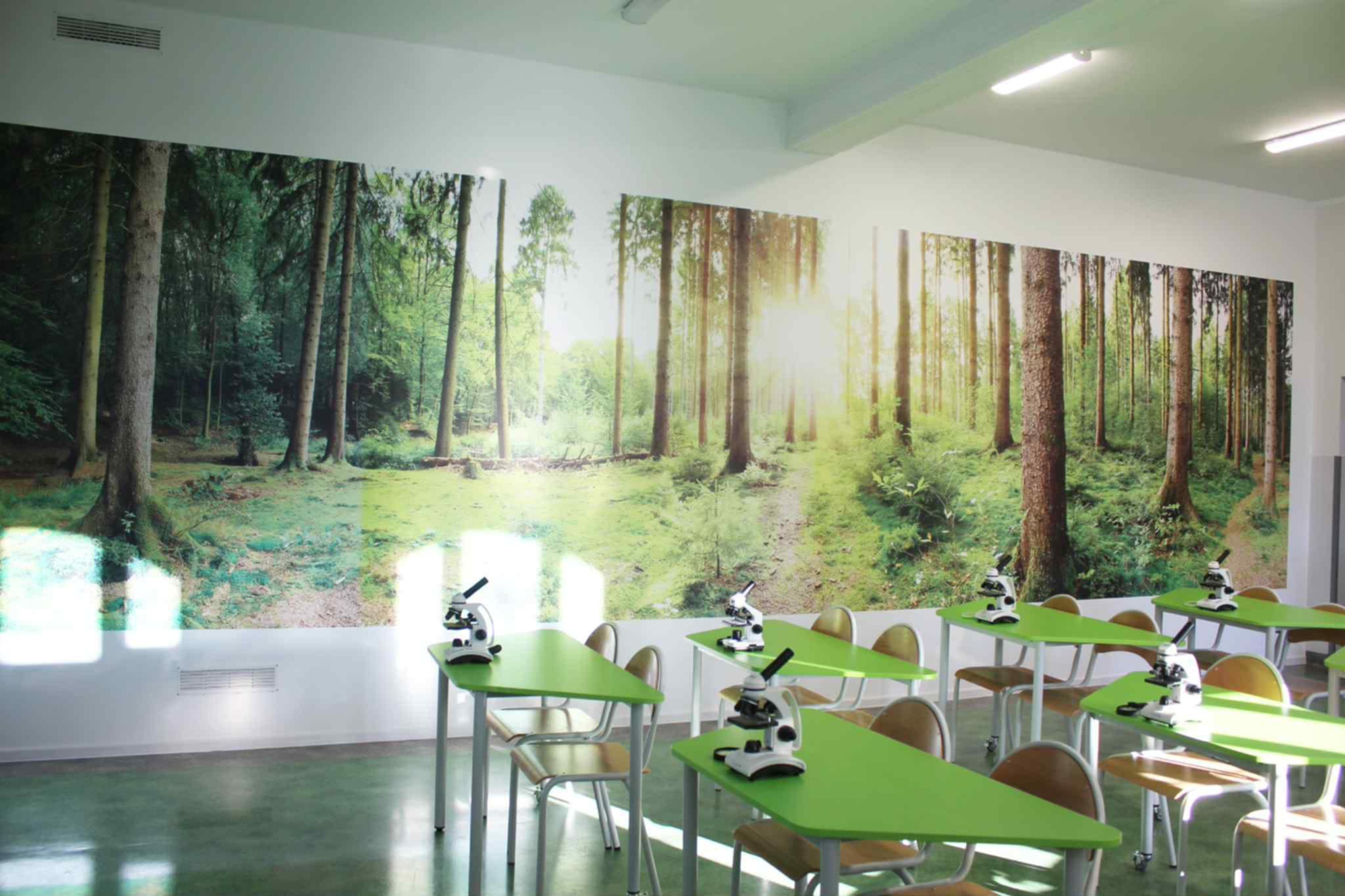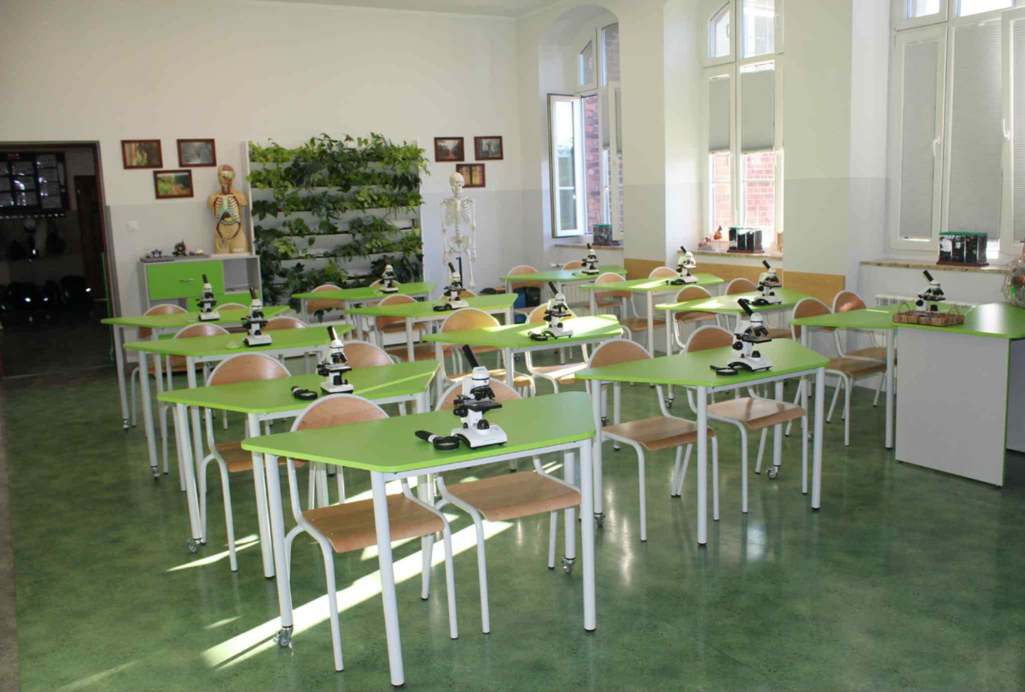 Nowa przestrzeń edukacyjna wyposażona została w nowoczesne mikroskopy, stanowiska do pracy badawczej, a także zieloną ściankę wertykalną, która nadaje wnętrzu wyjątkowy klimat. Na ścianie pracowni znalazł się również barwny mural przedstawiający krajobraz Puszczy Noteckiej.